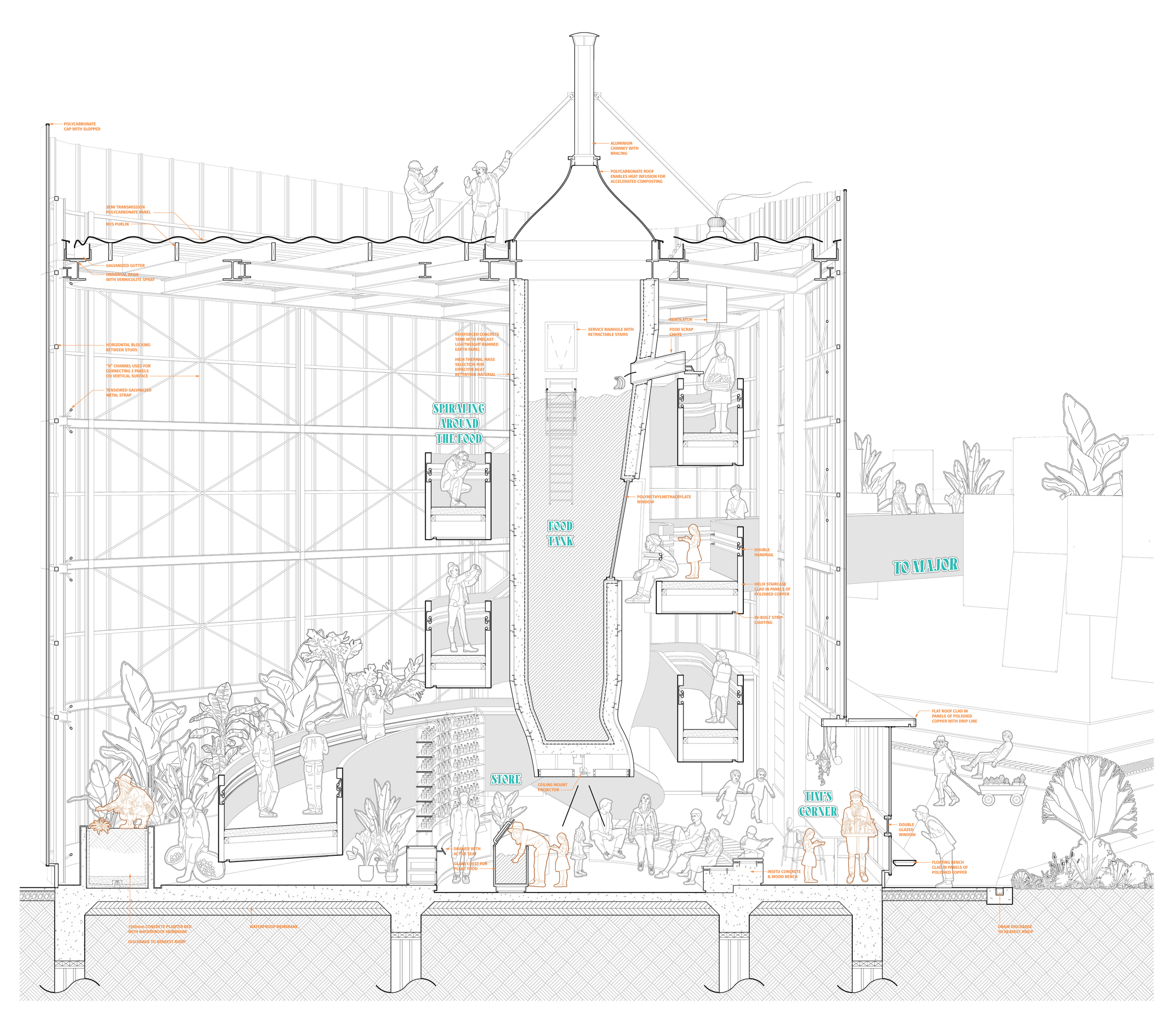 to showcase both the spatial and haptic approaches proposed by the pollinator through the creation of one highly detailed and characteristic section drawing.