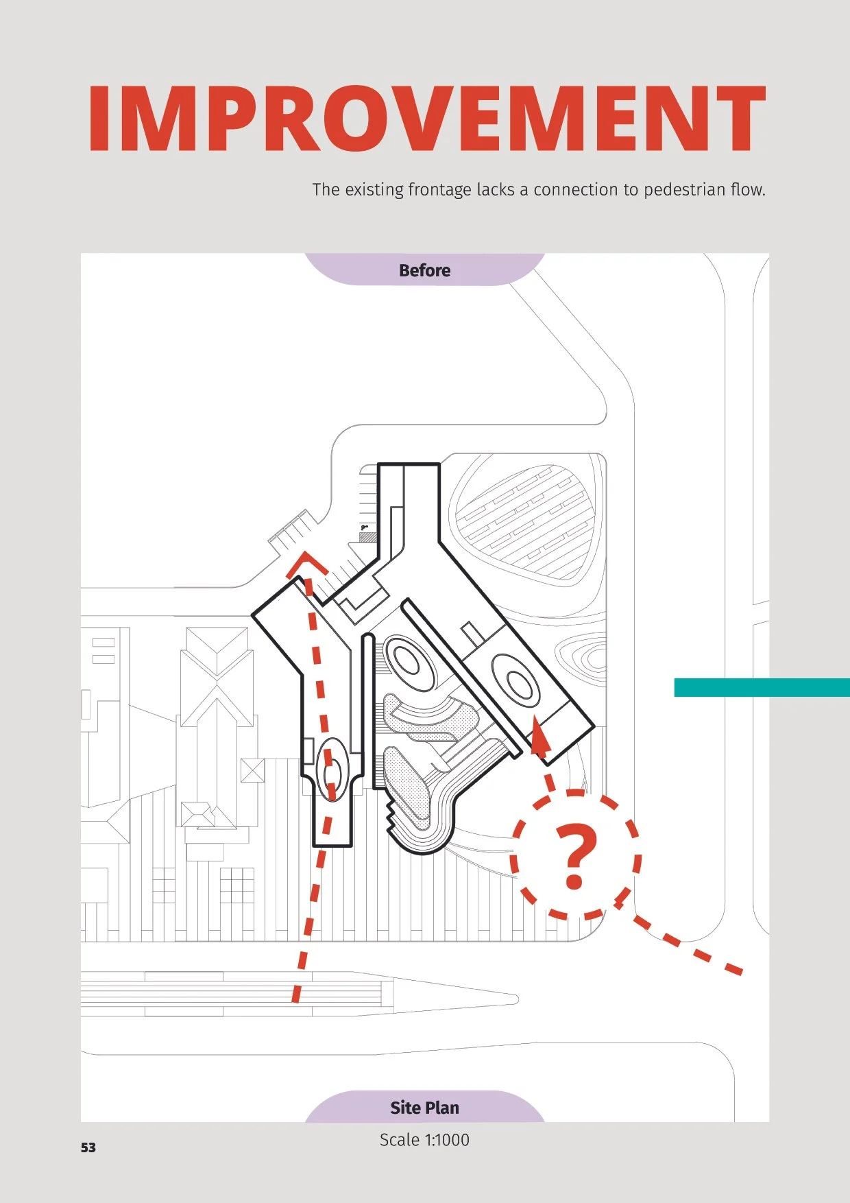 Directs and captures the attention of people, while a functional wall serves as a practical demonstration for visitors on proper food waste disposal. This interactive wall also highlights the types of food waste that are most commonly disposed of.